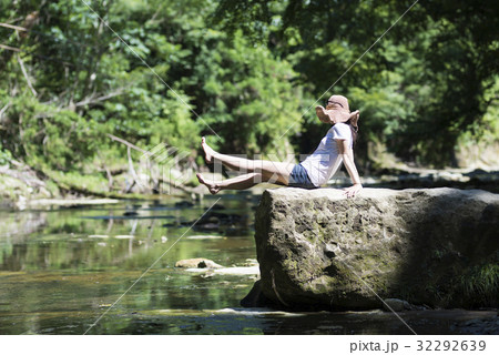川で寛ぐ美しい女性