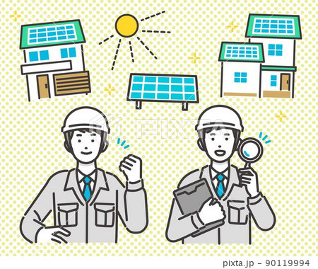 ソーラーパネルと作業員のベクターイラスト素材/建築/SDGs/自家発電/エコ