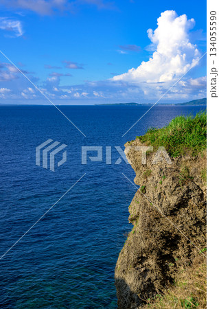 沖縄県 自然が作り出した万座毛の岩のアーチと青い海の風景