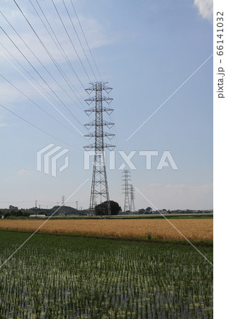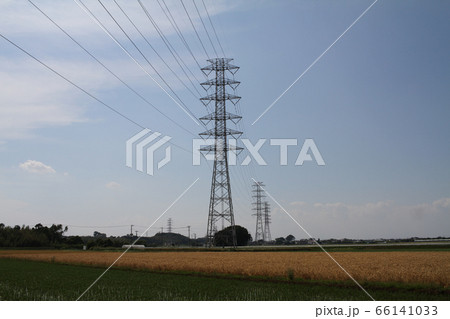 平らな農地に立つ巨大鉄塔:電気が静かに流れる風景