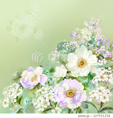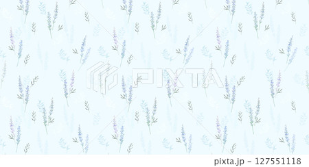 水彩で描いたピンクのバラと草花のシームレスパターン