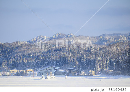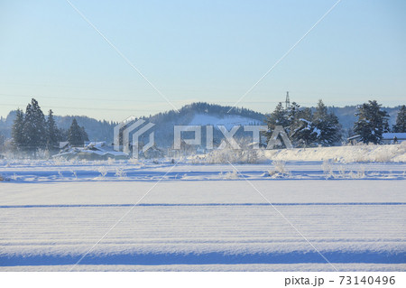 秋田県の雪景色 冬の朝