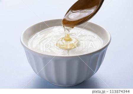 大豆ヨーグルト 豆乳ヨーグルト スプーンで蜂蜜をかける