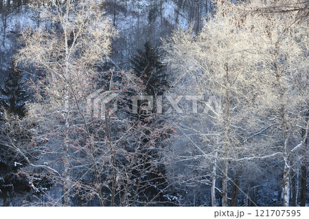 霧氷の林 極寒の朝 白銀の森