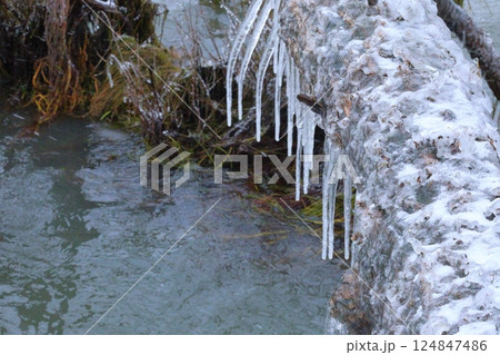 繊細な氷の結晶と青い輝きの幻想的な風景
