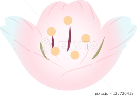 vibrant flamingo stands gracefully amidst delicate flowers and leaves, creating cheerful and lively atmosphere. soft pastel background enhances beauty of this tropical scene