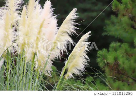秋風にそよぐシロガネヨシと松林の静寂