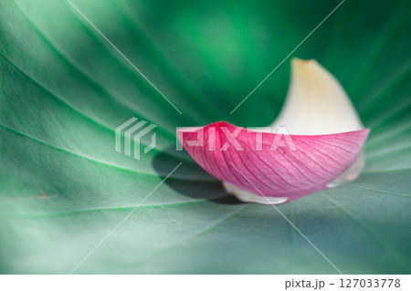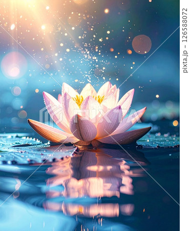 夏の朝の景色 朝日に照らされた美しいハスの花と煌めく水玉