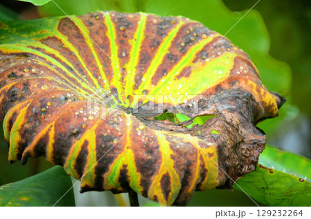 大阪市大川河川公園の瓢箪池の可憐なハスの葉