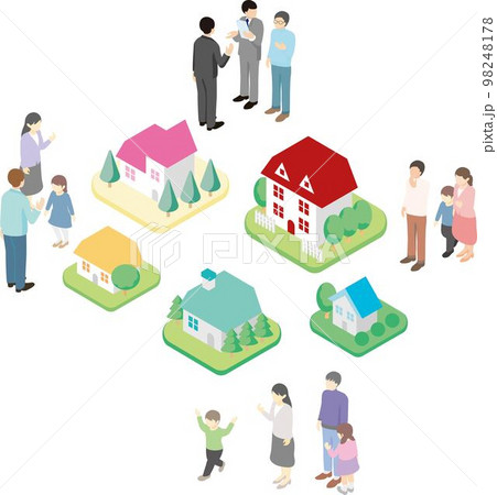 アイソメトリック アイソメ ビジネス 人物 家族 家 住宅 不動産 街並み イラスト素材セット