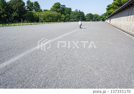 日本の伝統を感じる広々とした砂利道と緑