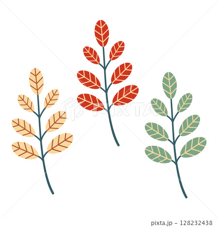 Set of leaves in different colours. Cute leaves drawn by hand. Cosy autumn design. Vector illustration