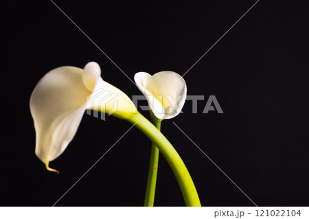 White kalia flowers and copy space on black background