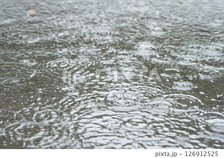 雨で水溜りができているイメージ (写真素材)