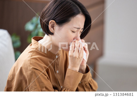 40代女性くしゃみアレルギー花粉症自然光白バック