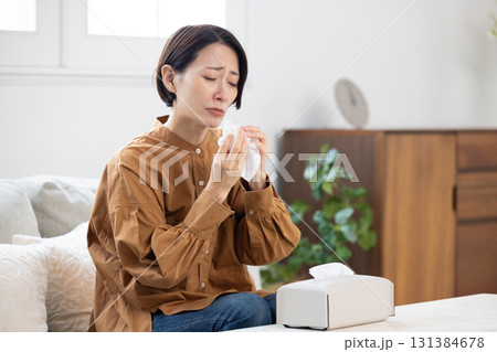 辛そうに鼻をかむミドル女性