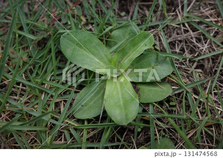 秋の野原で、ウラジロチチコグサがすくすくと育ち、葉を広げています。