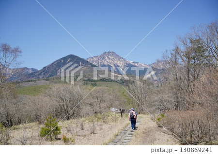 谷川岳・トマの耳から見る西黒尾根を行く登山者と天神平