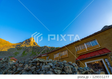 【山岳素材】朝の殺生ヒュッテから見る風景と槍ヶ岳【長野県】