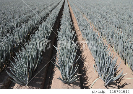 Farm fields in Florida. Agricultural cultivated field in summer season with growing green crops. Farming and agriculture industry in USA