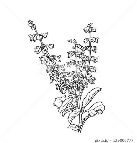 Thai basil Hand drawn sketch leaves of spice thai basi