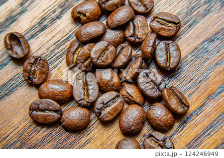 おうちカフェの雰囲気を伝える珈琲豆のクローズアップ