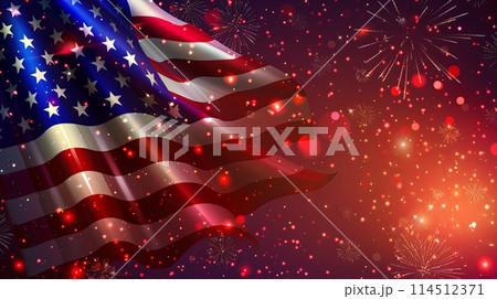 USA flag with red glitter background for 4th of July Independence Day, copy space