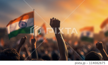 India Republic Day. A vibrant scene unfolds on India Republic Day: Tri-color flags flutter in the patriotic breeze as people celebrate democracy, unity, and national pride.