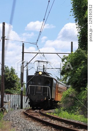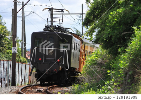 薄日を浴びて車体を輝かせる大井川鉄道E101形電気機関車