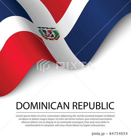 Waving flag of Dominican Republic on white background. Banner or