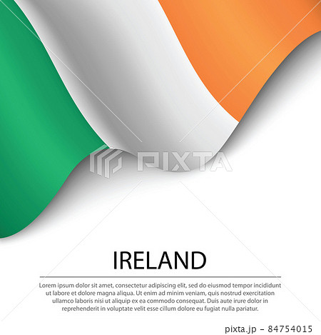 Waving flag of Ireland on white background. Banner or ribbon tem