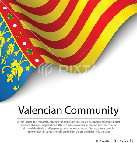 Waving flag of Valencian Community is a region of Spain on white