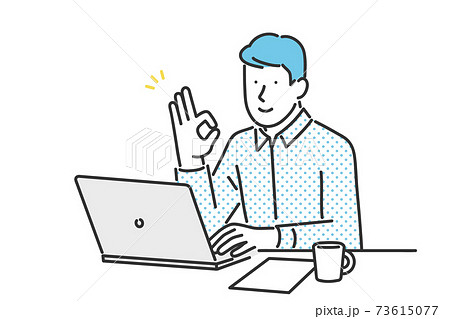 自宅でリモートワークをしている男性のイメージイラスト素材