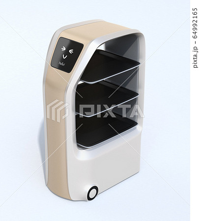 無人配膳ロボットのクローズアップイメージ。オリジナルデザイン