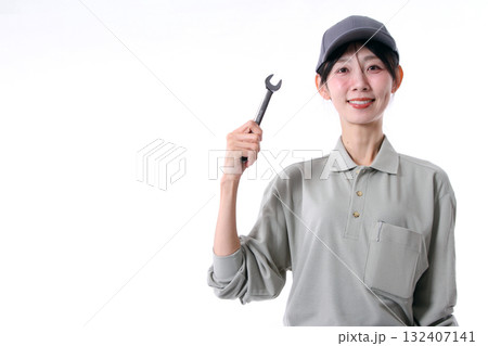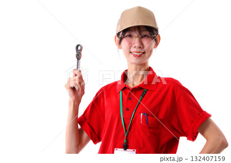 工具を持つ笑顔の女性労働者
