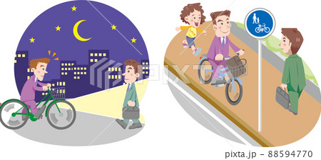 自転車<通行ルール・夜間のライト灯火と歩道通行・ビジネスマン>