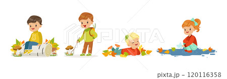 Autumn Children Enjoy Outdoor Seasonal Activity Vector Set