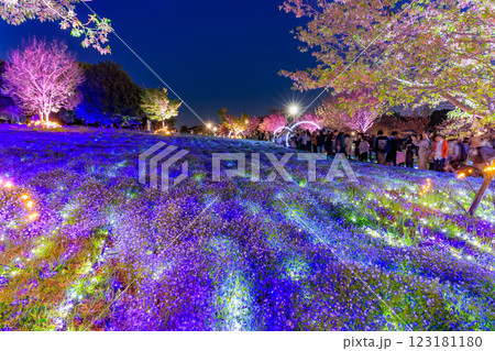 東京 足立区 舎人公園 ネモフィラ花壇の夜景