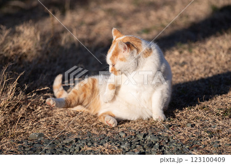 毛繕いする猫 茶白猫