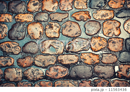 Old Stone Pavement Texture Background, Granite Cobblestone Road Pattern, Vintage Block Sidewalk