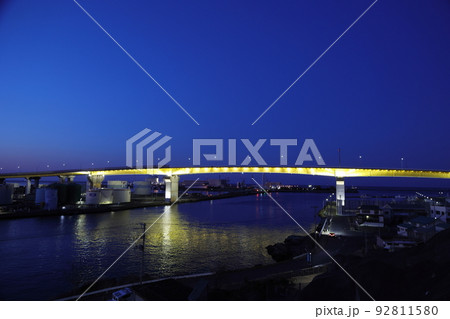 グレットタワーから観る八戸大橋と夜桜(青森県八戸市