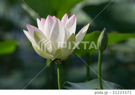花びらの先がピンク色の蓮 舞妃蓮 (まいひれん) 後姿