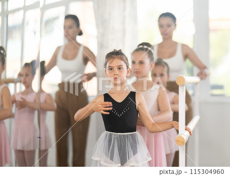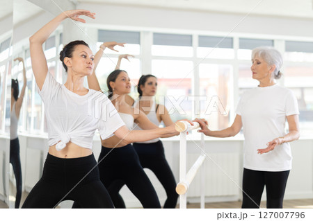 Ballet training for teenagers in a ballet studio under the guidance of choreographer