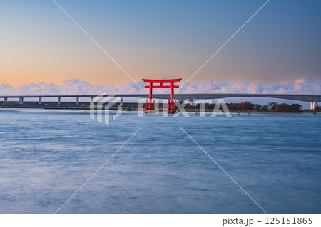 浜松市にある日の出前の弁天島の赤い鳥居の風景(静岡県)