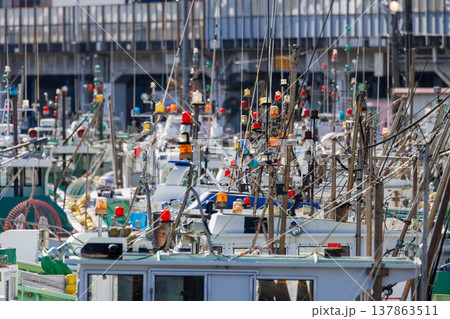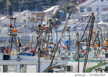 港に停泊する漁船の航海灯