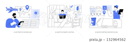 AI Optimizing Operations and Living abstract concept vector illustrations.