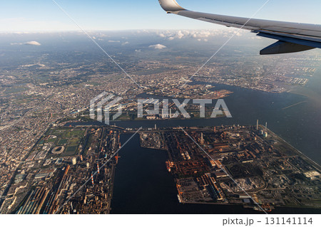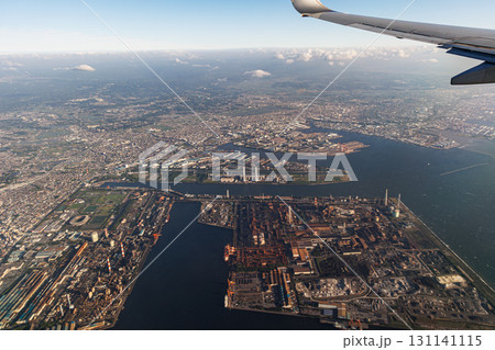 飛行機の窓の外から観る千葉県曽我市(湾岸)