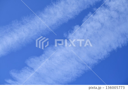 日本の横浜都市景観珍景航空機通過…霧散する2本の飛行機雲と通過する航空機…航空機ラッシュ…輝きの時代