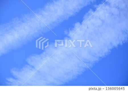 日本の横浜都市景観珍景航空機通過…霧散する2本の飛行機雲と通過する航空機…航空機ラッシュ…新時代へ