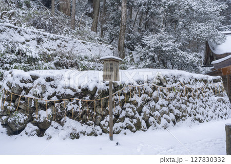 貴船神社奥宮 雪に覆われた吸葛社と御船型石